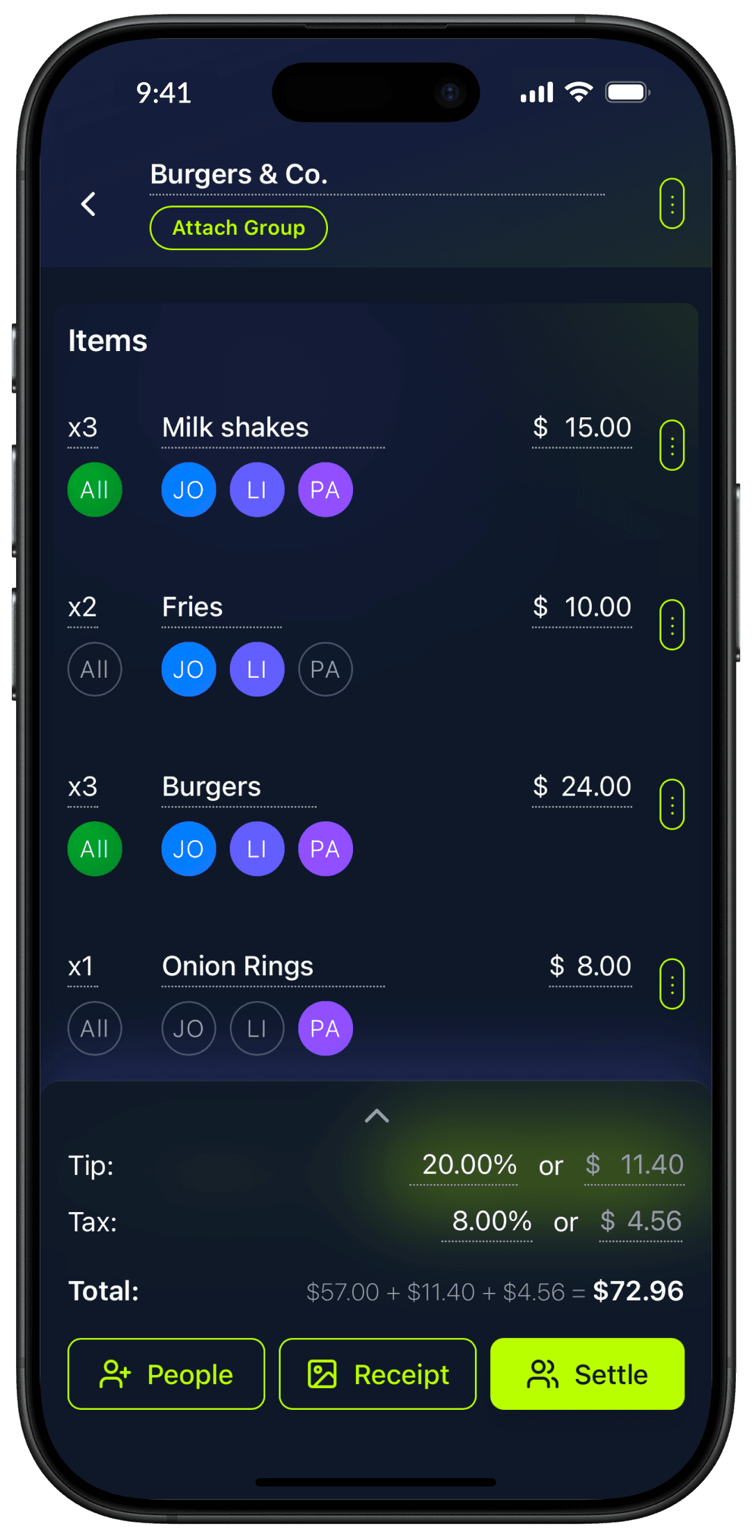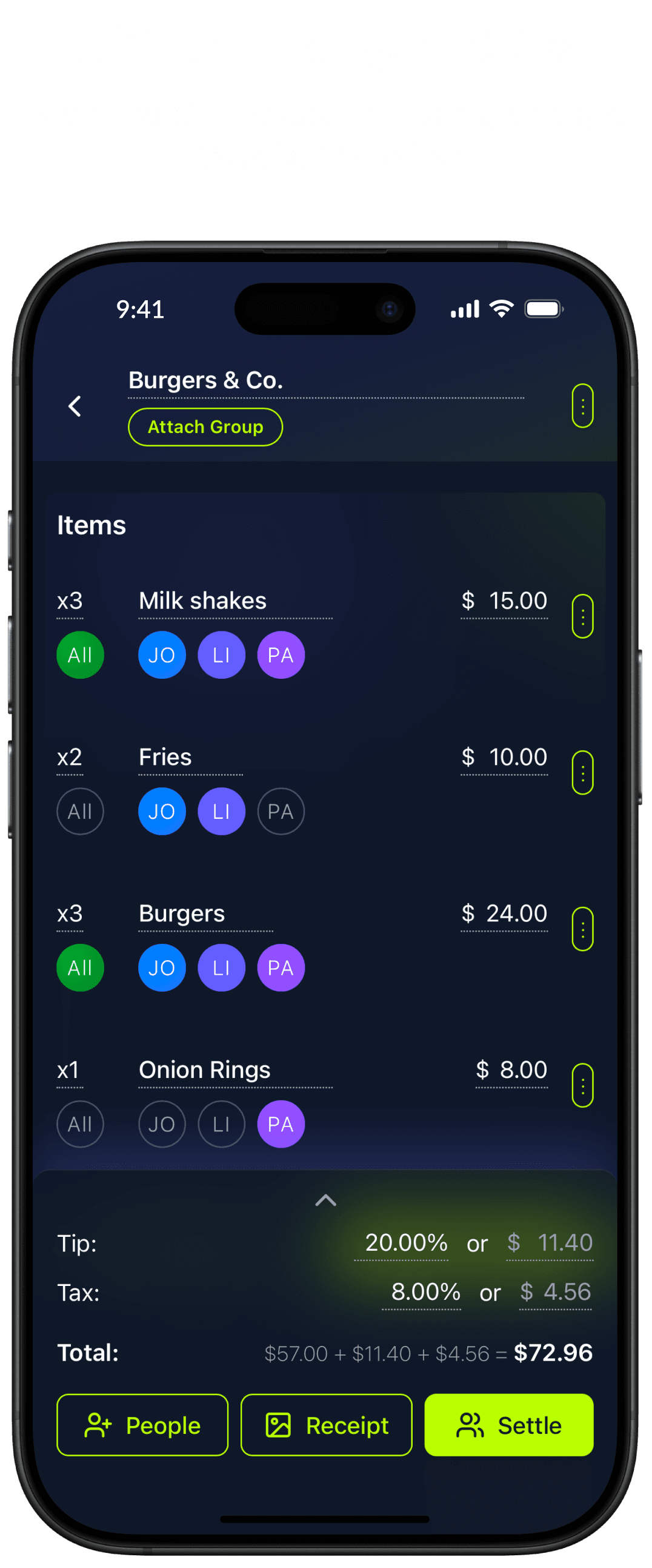 Point your camera at any receipt. We itemize every dish and drink for you.